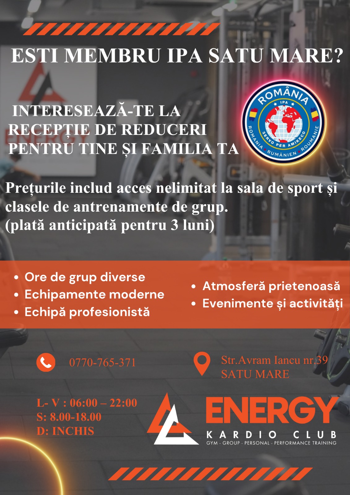 • Primești notificări cu informații importante despre activitatea clubului Energy Kardio Club